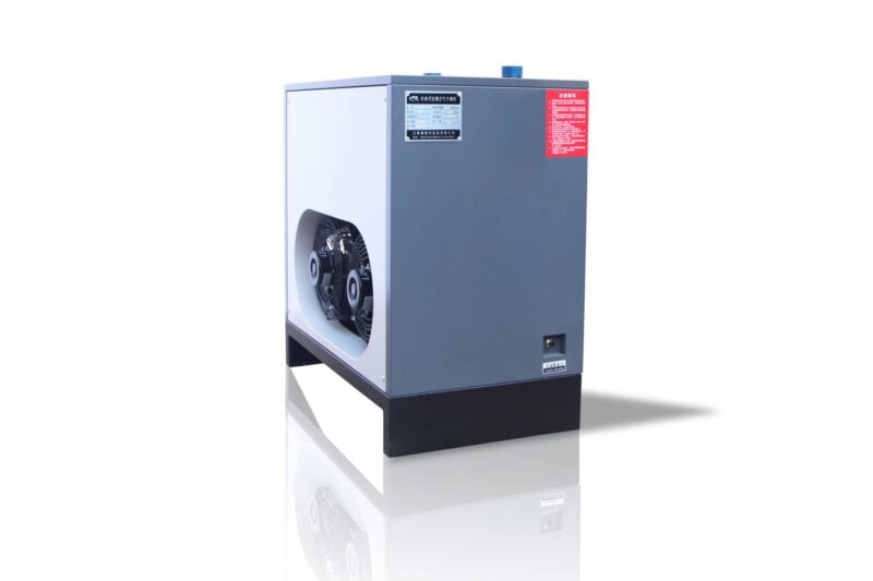 A refrigerated compressed air dryer is a device that removes moisture from compressed air by cooling it down to a temperature where the water vapor condenses and can be removed. This helps prevent corrosion and damage to pneumatic tools and equipment, and ensures that the compressed air is clean and dry for use in various industrial applications.