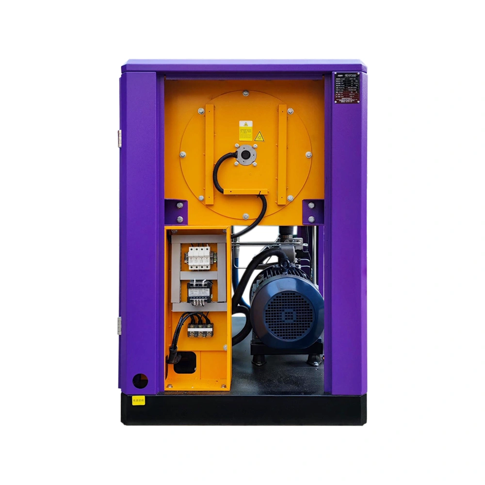A permanent variable speed rotary screw air compressor utilizes a permanent magnet synchronous motor, which does not require reactive magnetizing current and can significantly improve power factor (up to 1, even capacitive), reducing stator current and resistance losses. Additionally, there is no rotor loss during stable operation, which can reduce fan (even eliminating it in small capacity motors) and corresponding windage losses, resulting in an efficiency improvement of 2-8 percentage points compared to a regular motor of the same specifications.